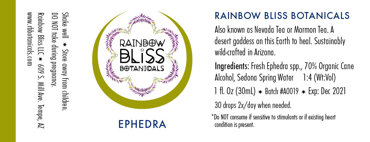Ingredients: Fresh Ephedra spp., Certified Organic Cane Alcohol (70%), Sedona Spring water, distilled water, vibrational essence of sleeping beauty turquoise.