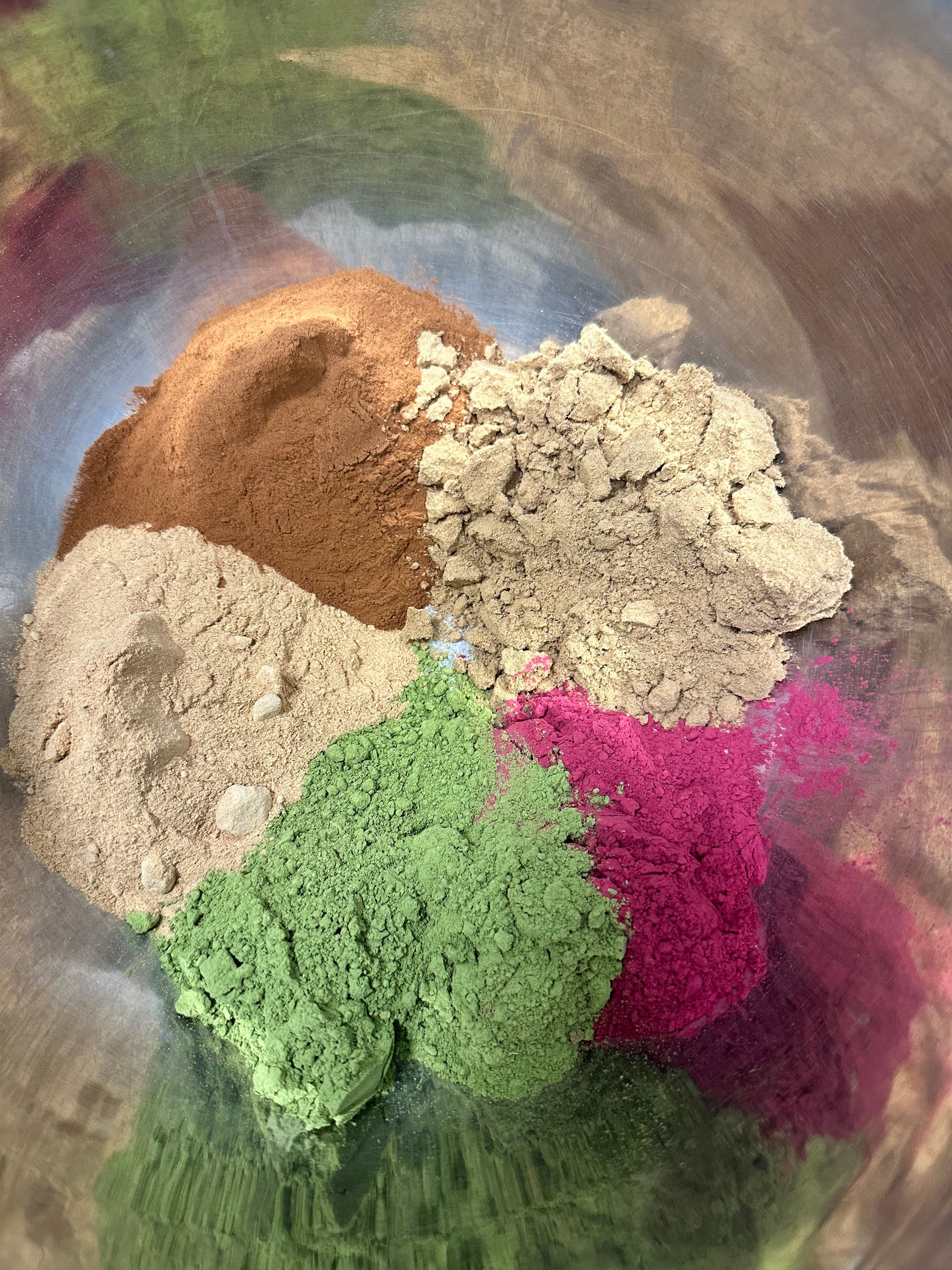 100% organic powdered extracts of: Red Beet Root, Tribulus terrestris, Horny Goat Weed, Mucuna pruriens, Maca root, Ginger Root, Sarsaparilla, Eleuthero Ginseng and Kola Nut.