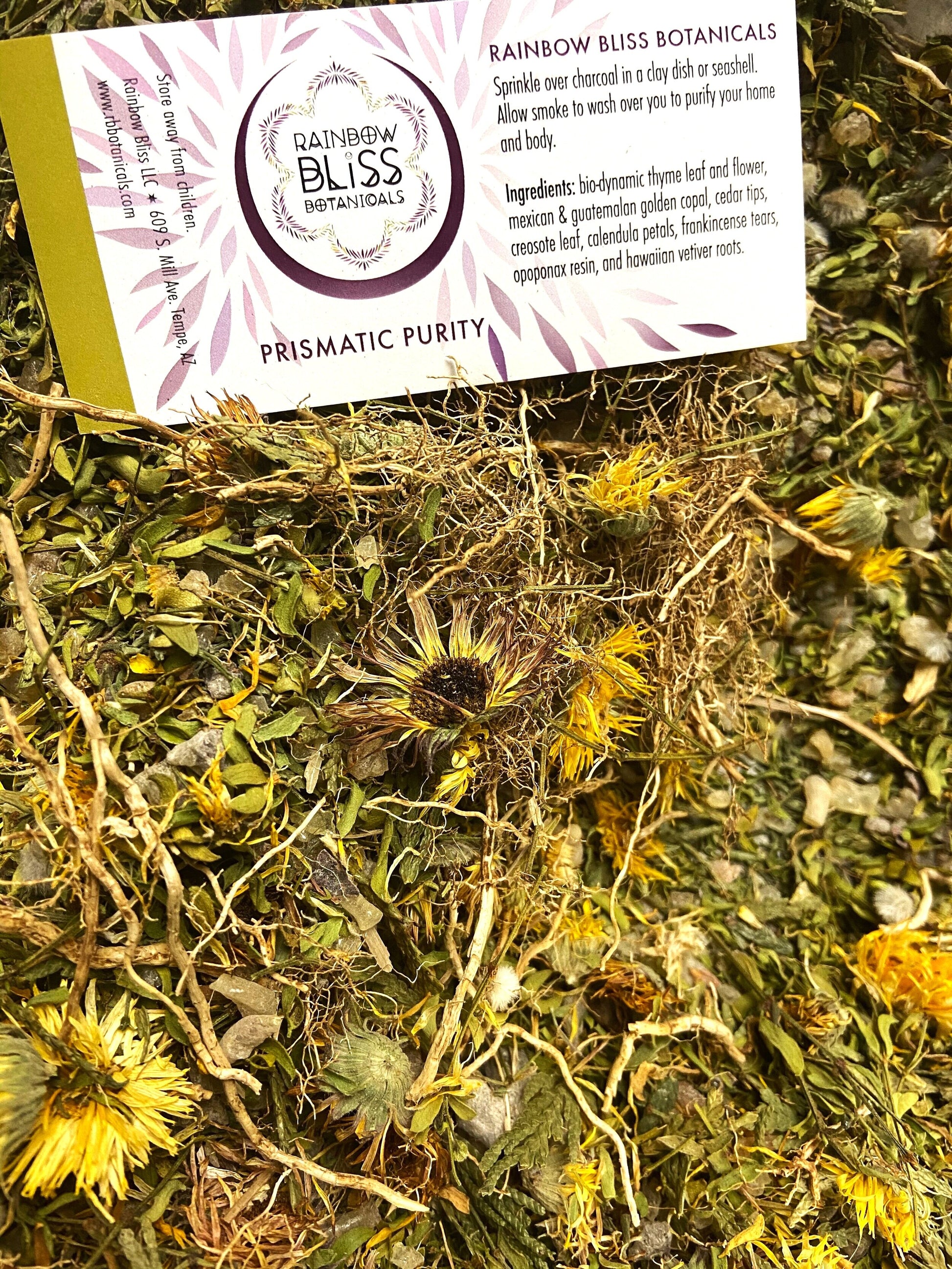 This one was originally a kind of blend that came from from I had at the end of a moon cycle on my altar.. and then it evolved to be especially wild with Sonoran desert resinous creosote leaves, homegrown calendula petals, Ethiopian frankincense tears, Guatemalan copal, potent thyme leaf, cedar tips from the Pacific Northwest, a dash of Opoponax resin and Big Island Hawaiian vetiver roots!!